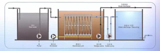膜生物反应器工艺是将活性污泥法和膜分离技术相结合的水处理技术。采用特殊结构的膜组件对生物反应器中的污泥混合物进行过滤,相当于替代传统的二沉池和三级处理工艺。该膜可以截留污泥混合物中的微生物,实现水力停留时间和活性污泥龄的完全分离,消除污泥膨胀问题。膜生物反应器具有污染物去除效率高、出水水质好、污泥产量低等优点。然而,目前膜组件的初始投资和更换维护成本相对较高。随着膜技术的不断发展,膜产品的生产成本逐渐降低,性能逐渐提高,应用范围会越来越广。