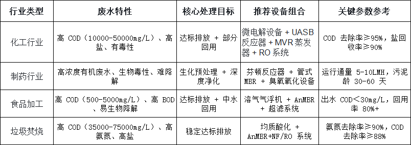 二、高浓度废水处理设备选型核心逻辑与行业适配